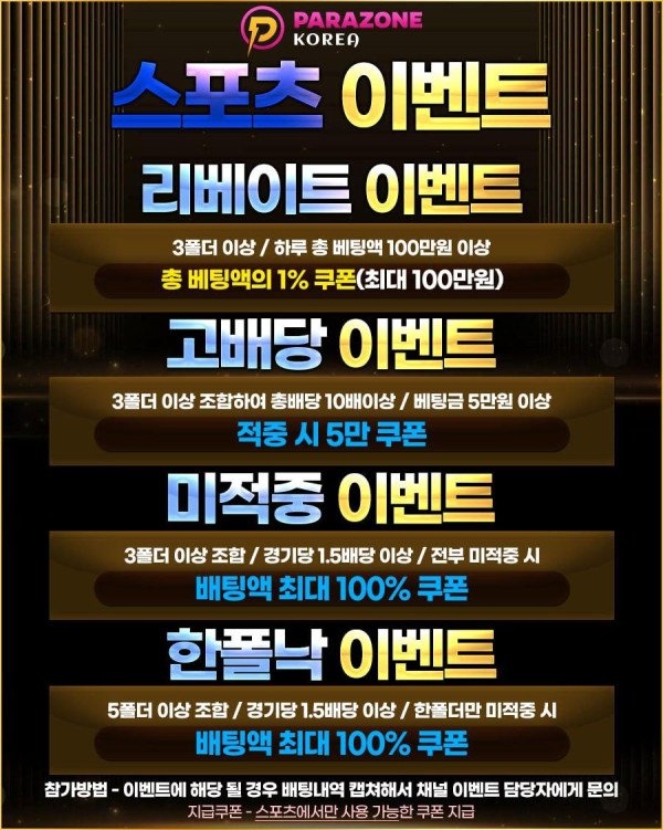 토토사이트 파라존 코리아 -스포츠 채널 전용 이벤트 안내